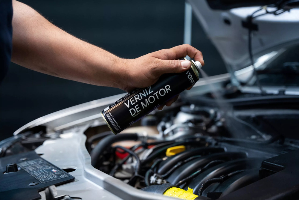 Verniz de motor en aereosol protege, da brillo y renueva todas las superficies existentes en el compartimento del motor, como piezas de metal y plástico, superficies pintadas y mangueras de goma. El producto forma una película ligeramente lubricada resistente a altas temperaturas y protege hasta por 6 meses.