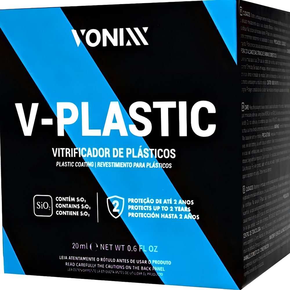 V-Plastic es un recubrimiento semipermanente desarrollado exclusivamente para tratar superficies plásticas, renovándolas y restaurándolas hasta por dos años. Proporciona resistencia y protección UV. También se puede usar en plásticos nuevos para prevenir la degradación del material y extender su vida útil hasta tres veces. V-Plastic se puede aplicar a parachoques, paneles y laterales de las puertas.