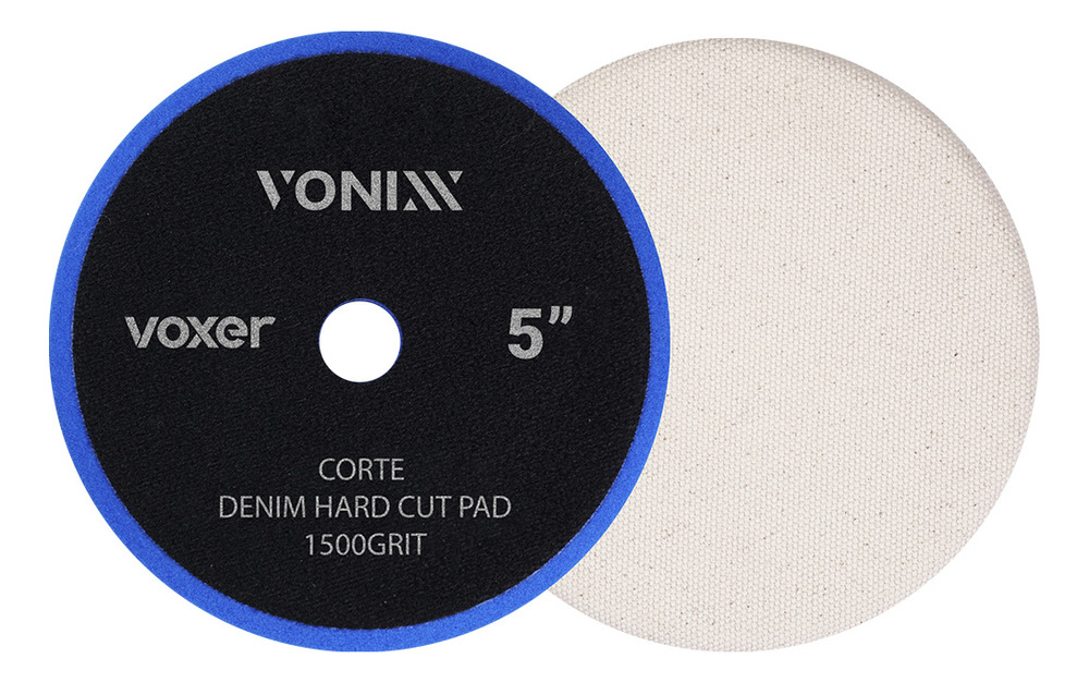 La boina jeans de corte blanco Voxer está recomendada para la primera etapa del pulido automotriz. Utilizado en la etapa de corte en conjunto con pulidoras roto-orbitales y rotativas, es capaz de eliminar cáscaras de naranja y defectos profundos correspondientes a una lija de grano 1500.