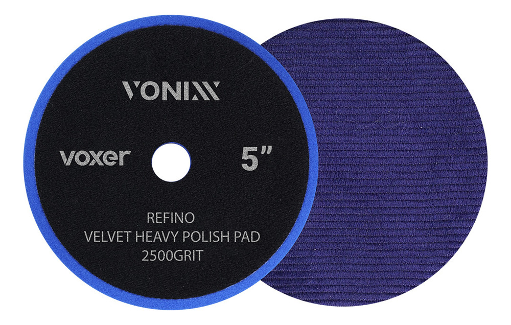 La refinada boina de terciopelo azul voxer se recomienda para la segunda etapa del pulido de automóviles. Utilizado en la etapa de refinado en conjunto con pulidoras roto-orbitales y rotativas, es capaz de eliminar cáscaras de naranja y defectos correspondientes a lijas de grano 2500.