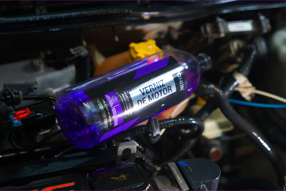 Verniz de motor protege, da brillo y renueva todas las superficies existentes en el compartimento del motor, como piezas de metal y plástico, superficies pintadas y mangueras de goma. El producto forma una película ligeramente lubricada que penetra en lugares difíciles y se adhiere a todas las superficies antes mencionadas. El barniz de motor es resistente a altas temperaturas y dura hasta seis meses. También se puede utilizar en chasis y cajas de ruedas, aportando los mismos beneficios que su aplicación en el motor.