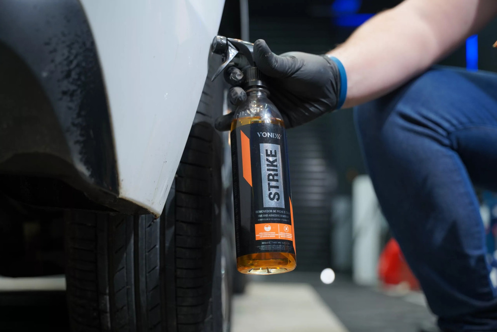 Strike es un producto con una fórmula equilibrada que actúa para eliminar el alquitrán y la mayoría de los residuos de pegamento de las pegatinas y etiquetas adhesivas en general.
