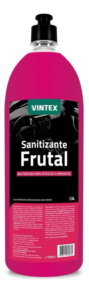 Frutal Sanitizer fue desarrollado con amonio cuaternario especial, que actúa eliminando hongos y bacterias del interior del vehículo o del ambiente, ayudando a reducir las enfermedades causadas por estos microorganismos y eliminando los malos olores. Además, el producto también promueve un aroma agradable dentro del vehículo o en el ambiente.