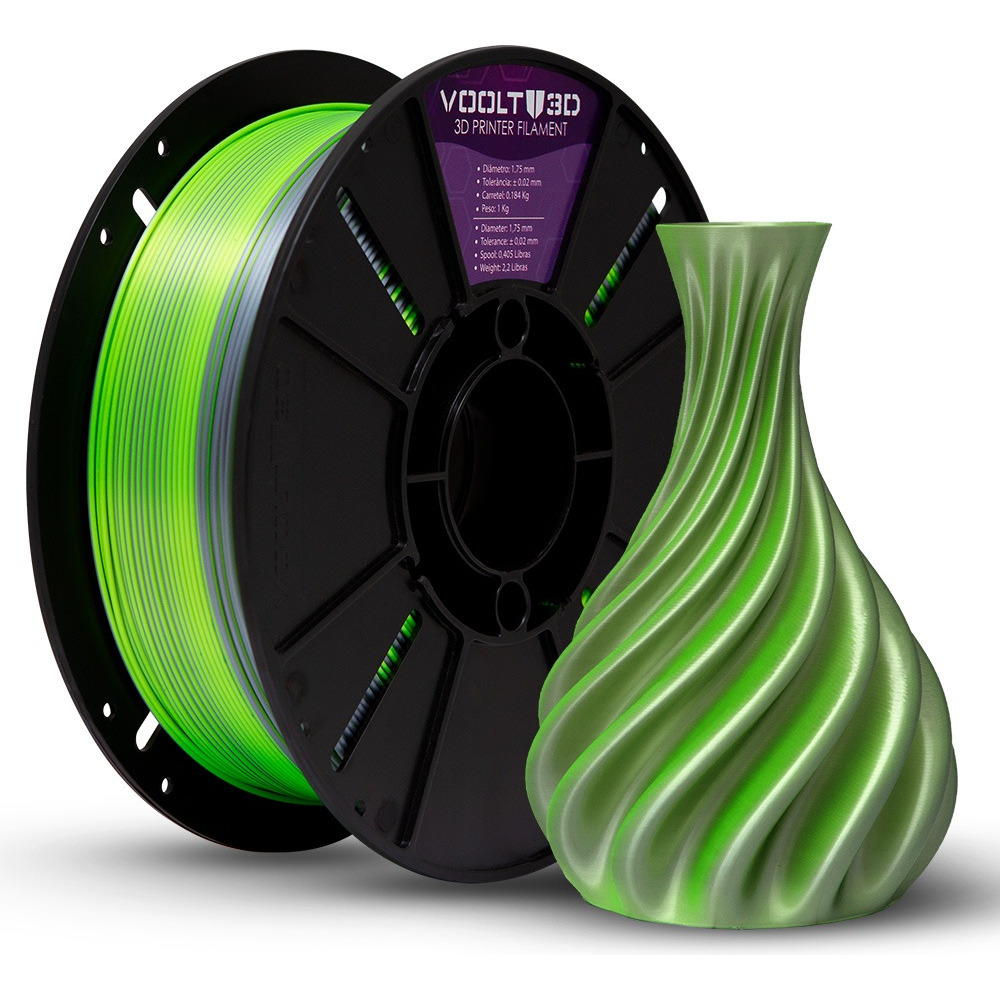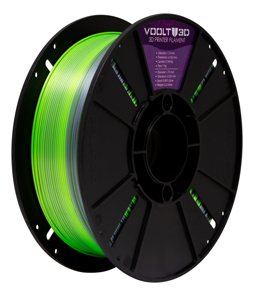 Filamento 3d Pla Duo Color Plata Con Verde Neon – Plduptvd